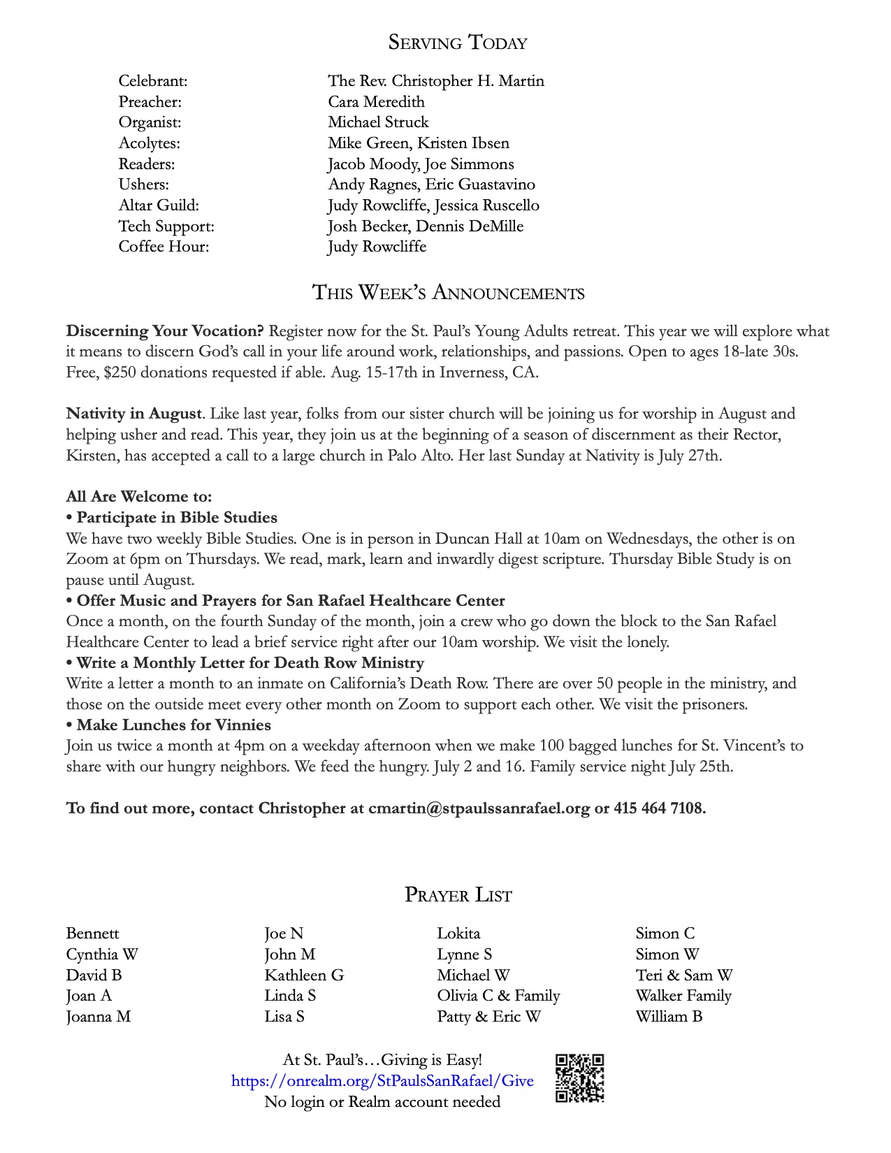 Click on PDF above to save bulletin.